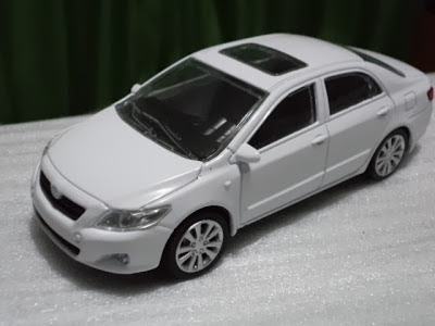 Un buen molde de Rastar a escala 1:43, aunque le faltan algunos detalles de pintura, como son los marcos de las ventanas , principalmente. Mas adelante le haré esos detalles. Igual es un nuevo Toyota Corolla que se adhiere a mi colección.....que por suerte, mi pareja a comenzado a gustar de ella y a ayudarme en ordenarlos y buscarlos.